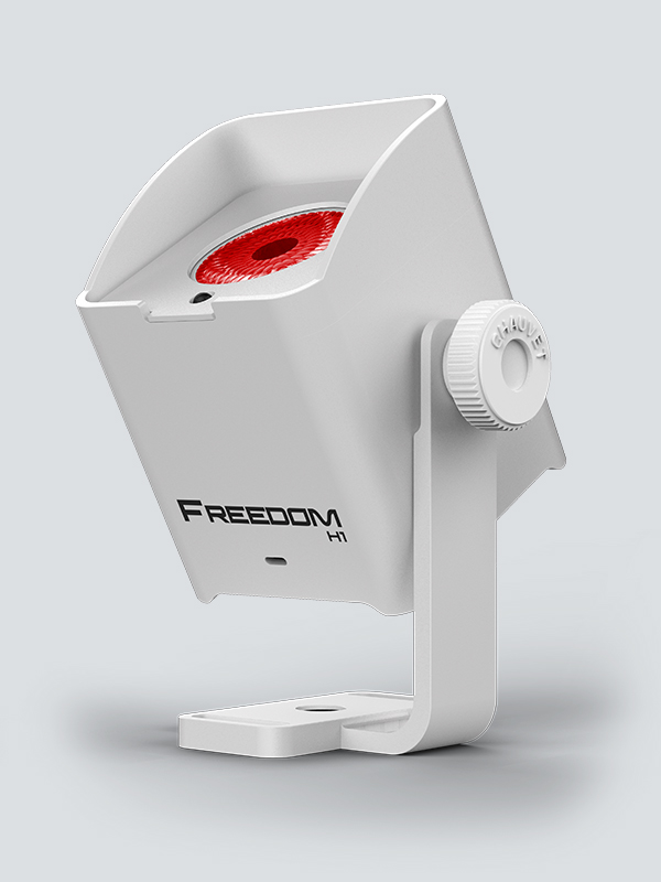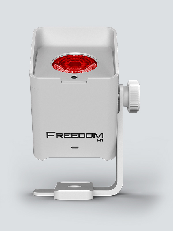 Freedom H1 is a compact 100% TRUE wireless, battery-operated, LED wash light with a built-in D-Fi transceiver. The fixture features a single hex-color (RGBAW+UV) 10W LED. Its magnetic base makes it easy to mount the light to most metal surfaces providing added versatility. Because of its small size, Freedom H1 features effortless transport and set-up. Freedom H1 has a digital display for easy control and adjustment of all settings. Multiple control options include stand-alone mode, wireless DMX, or IR. The Freedom H1 X4 system includes 4 fixtures, 4 diffusers, a carry bag, multi-charger, and IRC-6 remote.