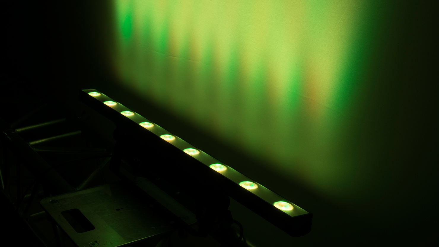 Full-size LED strip light functions as a pixel mapping effect, blinder or wall washer