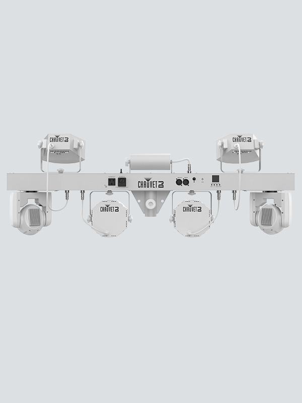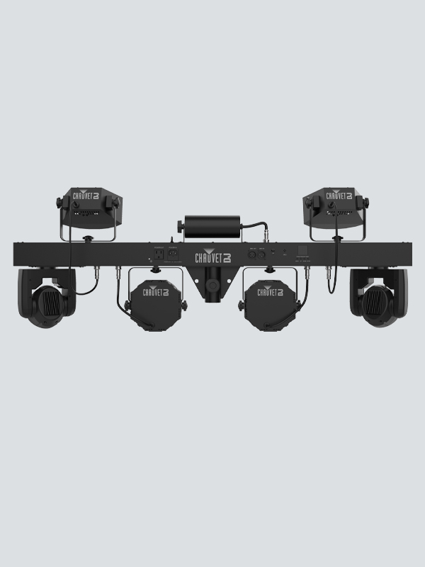 5-in-1 lighting system that includes moving heads, derbies, washes, a laser and strobe effect pre-mounted on a single bar