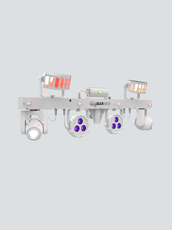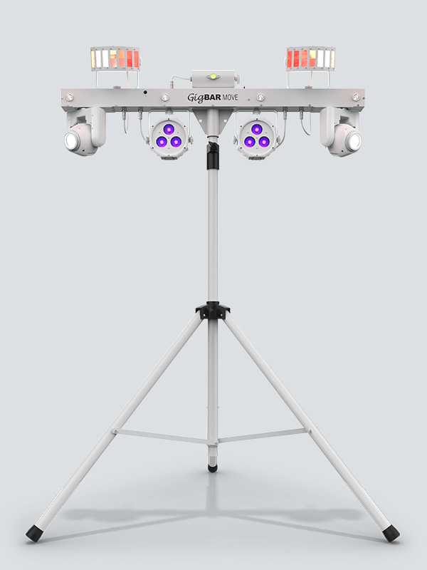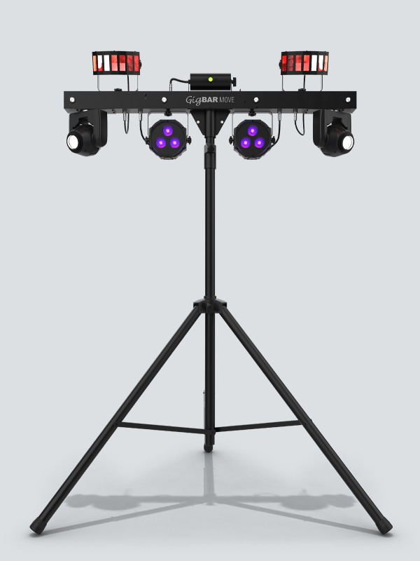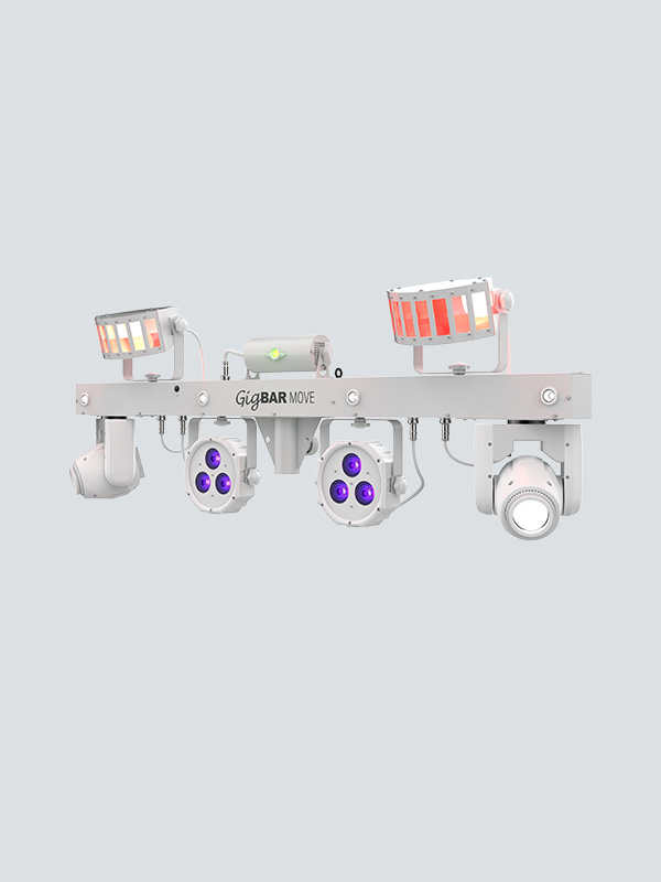 Ultimate gig lighting convenience, versatility and power is packed into GigBAR Move, a 5-in-1 lighting system that includes moving heads, derbies, washes, a laser and strobe effect pre-mounted on a single bar. That means a complete light show is available from this single system that includes a tripod, wireless footswitch and FREE carry bags to ensure quick setup. The moving heads have separate color and gobo wheels to enhance creative programming possibilities, plus built-in Totem Mode to keep the moving heads focused on the dance floor. Individual control of each effect ensures your show looks the way you need it to and events can be energized with dynamic effects like built-in UV LEDs to illuminate florescent objects and make them pop. Controlling GigBAR Move is also easy. Stand-alone control, DMX, wireless IRC-6 remote or wireless footswitch options are all on board. GigBAR Move is also compatible with GigBAR 2 in master/slave mode for huge coverage and dynamic light shows.